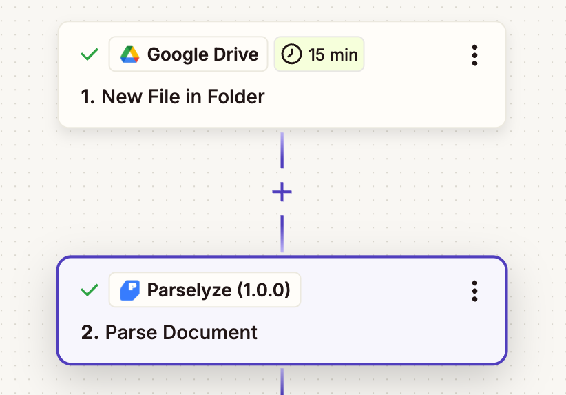 - Trigger: Gmail → New Attachment (or Google Drive → New File in Folder)